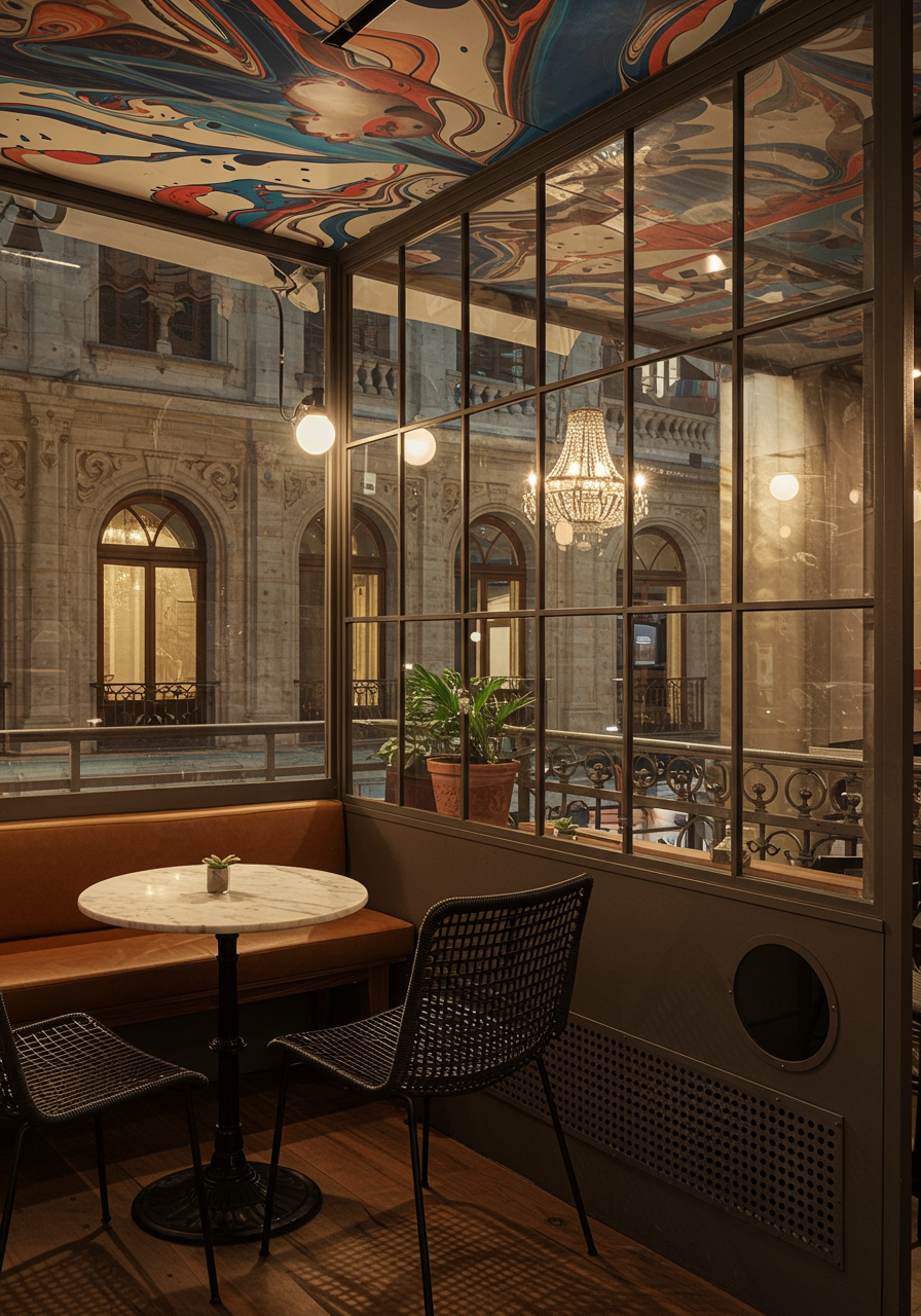 It is great inspiration for anyone that wants to mix up their monochromatic look. The guest rooms (that I saw) feature cowhide headboards with metal cage light fixtures and colorful art while the doors and ceilings and views to the central station below echo the days of the past. Certainly a different direction then its counterpart, The Hermitage, on the other side of town, where tradition remains strong and the furniture reflects the architecture and origins of this grand hotel.