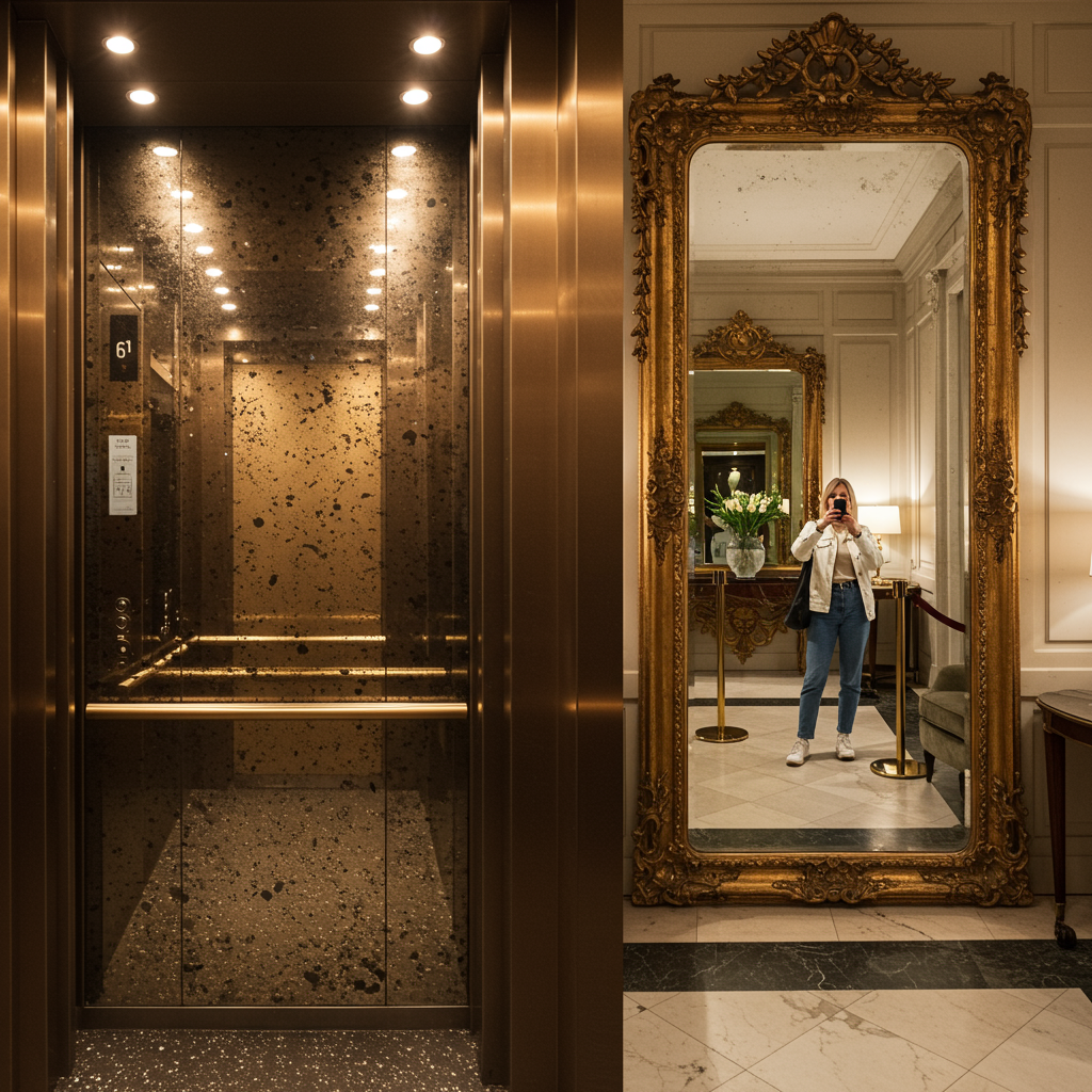 JW Marriott, incorporated trending looks of gold light fixtures, wall to ceiling windows, and burnished mirrors – a look I fell in love with two years ago in a Las Vegas eatery.