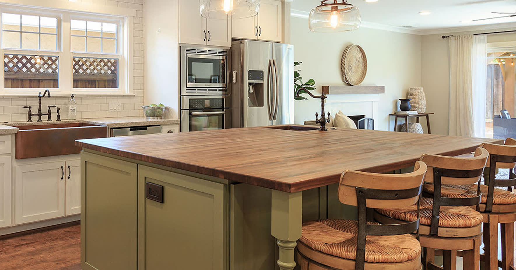 Natural anti-bacterial properties that exist in the wood make butcher block counters a great choice. There have been studies in the past showing wood cutting boards to be safer than plastic ones when it comes to e-coli, listeria, and salmonella so why not deck your whole kitchen or at least your island in it? I love the warmth butcher block brings to a kitchen. The kitchen is always where people gather so why wouldn’t you want the design to have warmth to it. For wood choices, go with the look you want, Brazilian Cherry is one of the hardest. Maple is hardwood and has a clear grain. Red oak is a hard oak and offers a rich color. You may still want to use a cutting board to protect the surface depending on the look you are going for in your kitchen. As far as maintenance, it is a good idea to sand and oil with mineral oil twice a year to seal and stop moisture from penetrating the wood.