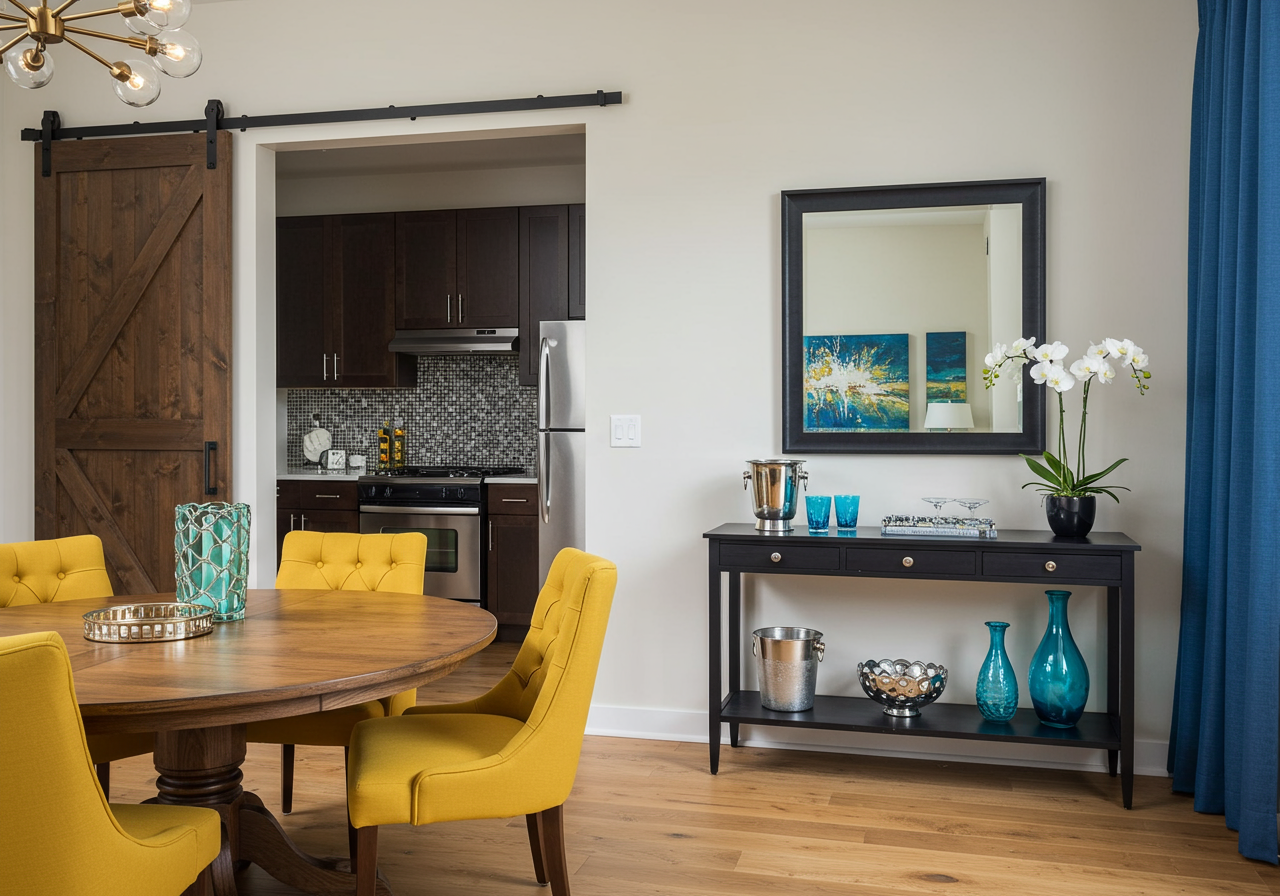 I like the idea of dining chairs bringing in an element of chic design. Easy enough to change out or slipcover if you tire of the color pop.