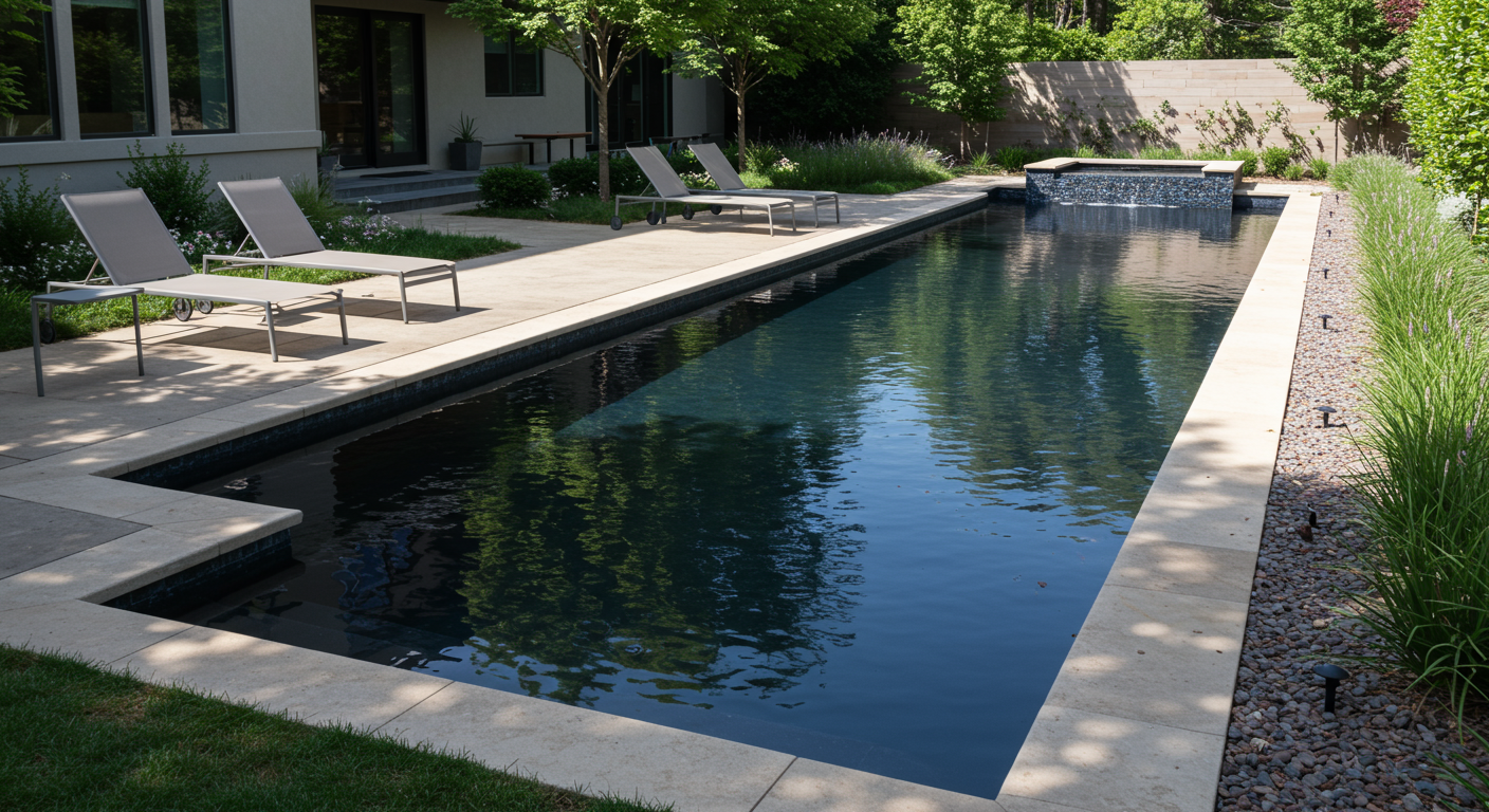 Instead of traditional light-blue pool surfaces, some people are opting for darker colors, such as azures or cobalt blues that make the pool look deeper and convey a lagoon-like effect. In addition to looking great, dark colors absorb more of the sun’s heat, increasing the water temperature and reducing pool-heating costs.