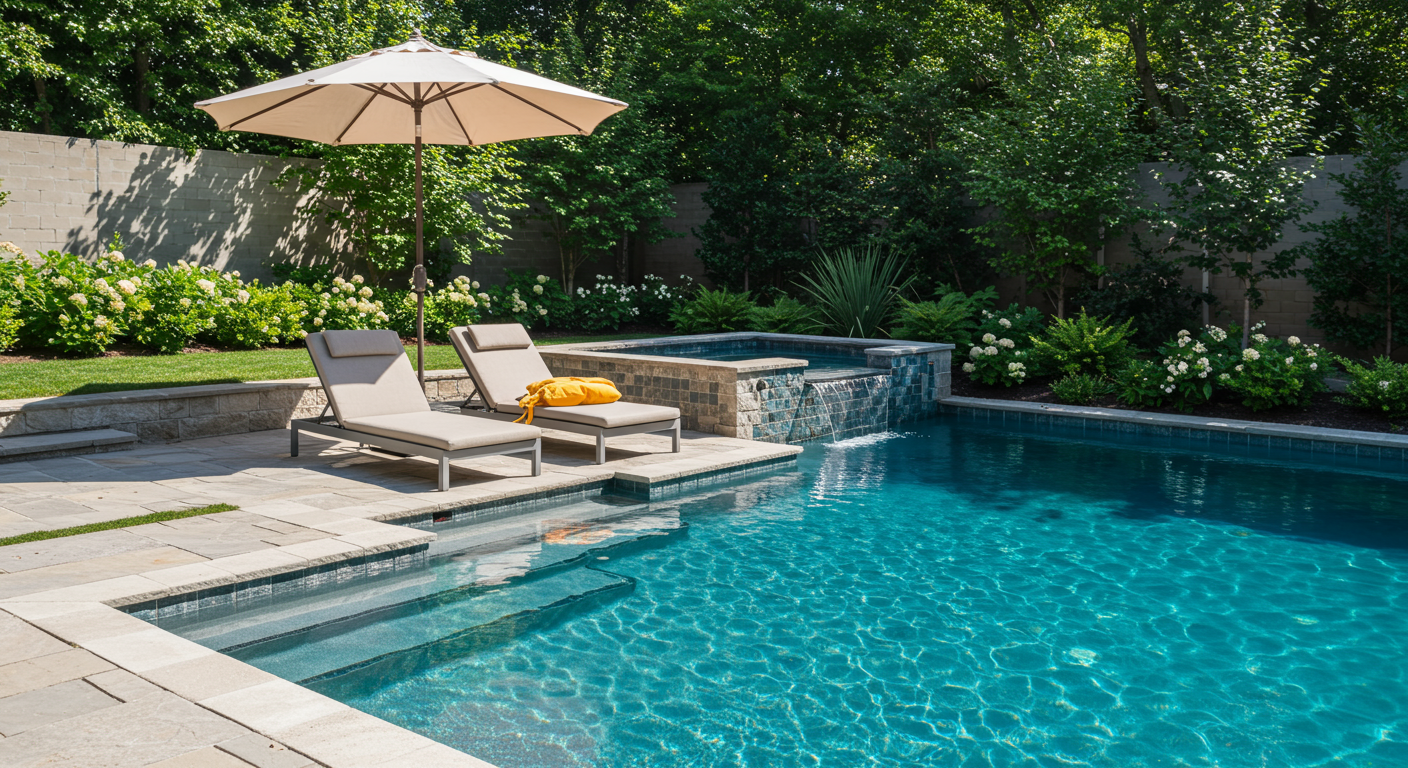Sun shelves, also known as Baja shelves or tanning ledges, are a new favorite feature for homeowners. These flat, shallow sections are an ideal place for adults to enjoy the pool without getting fully submerged and an area where young children can play. It’s also the perfect spot to add a lounge chair or beach umbrella.