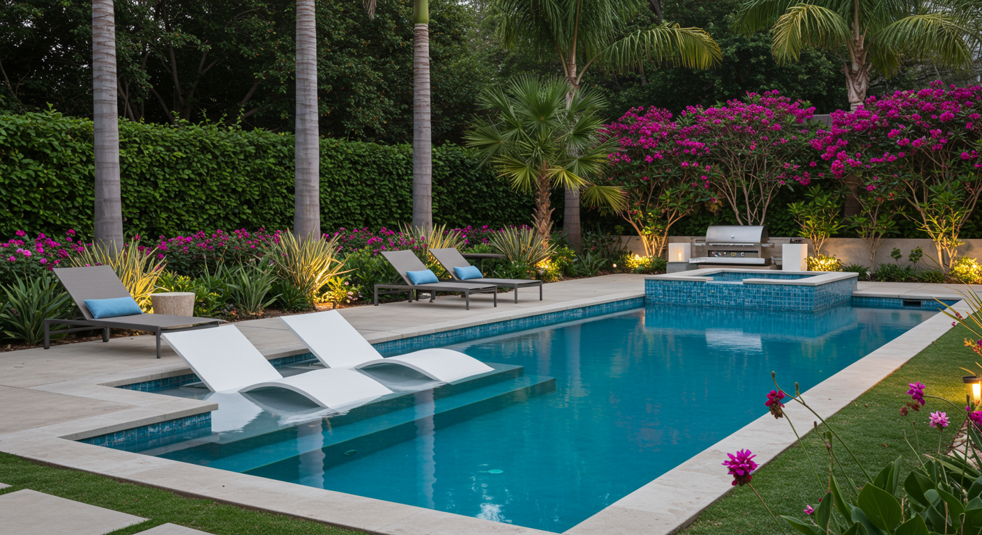 If you’ve ever stayed at a resort, you know how comfortable and relaxing it can be to soak in some rays while dipping your feet in the pool. If you have a sun shelf or Baja shelf, it’s easy to add this furniture to your backyard pool. Simply submerge it into your pool, let it fill with water and pull it onto the ledge. Make sure you choose durable loungers made of high-quality materials that can withstand the elements.
